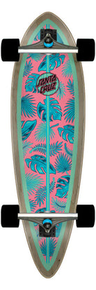 Santa Cruz Skateboards Cabana Dot Pintail Cruiser featuring updated, smaller pintail shape on 9 ply deck with Bullet 160mm reverse kingpin trucks and Santa Cruz branded 60mm 78a Slimeballs wheels.