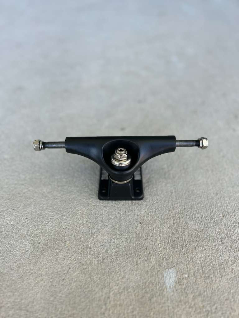 Built to the exact specs of leading truck brands, Mini Ripperz Pro trucks pair perfectly with our mini decks. Hollow axle and kingpin for lightweight performance, cast 7071 aluminum for durability, soft bushings for small riders. Mini Ripperz logo stamped onto baseplates and painted onto hangers.