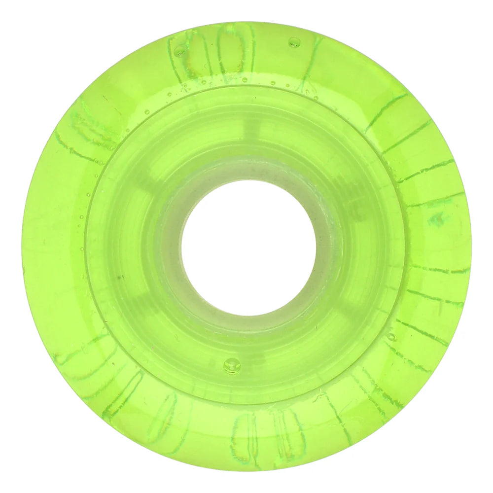 Ricta Wheel Dynamics 57mm Clouds in transparent green with glow in the dark green core, debossed and pad printed lettering.