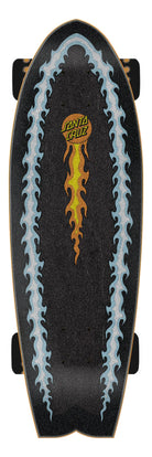 Santa Cruz Skateboards Flaming Dice Dot Shark cruiser featuring SC's newest Shark shape with gloss graphic art. This new shark shape is easier to ride, turns effortlessly, and is lower to the ground for easy pushing. Featuring 7 ply construction, Cruz Missile II concave for a super comfortable ride, Krux 8.0 Black Widow DLK trucks with Krux risers, and 60mm Santa Cruz Branded Slime Balls Light Ups wheels.